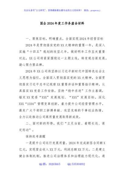 / 国企2024年度工作务虚会材料