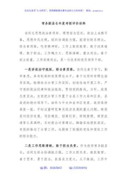 / 常务副县长年度考核评价材料