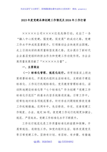 / 2023年度党建品牌创建工作情况及2024年工作打谱