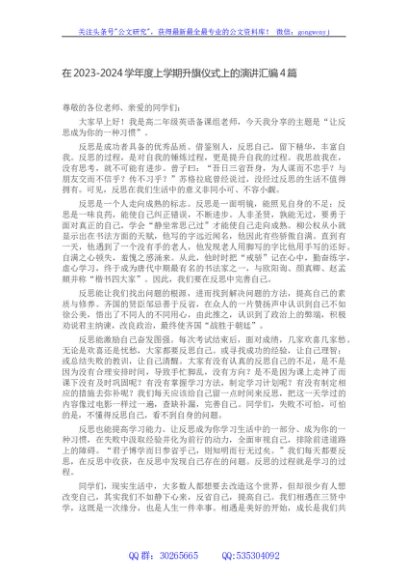 / 在2023-2024学年度上学期升旗仪式上的演讲汇编4篇