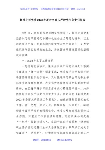 / 集团公司党委2023年履行全面从严治党主体责任报告