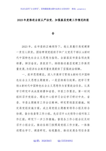 / 2023年度推进全面从严治党、加强基层党建工作情况的报告