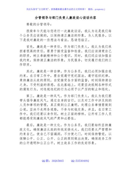 / 分管领导与部门负责人廉政谈心谈话内容