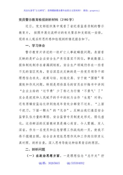 / 党员警示教育检视剖析材料