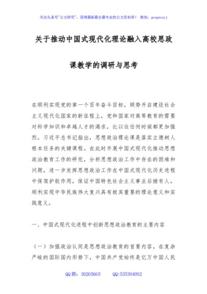 / 关于推动中国式现代化理论融入高校思政课教学的调研与思考