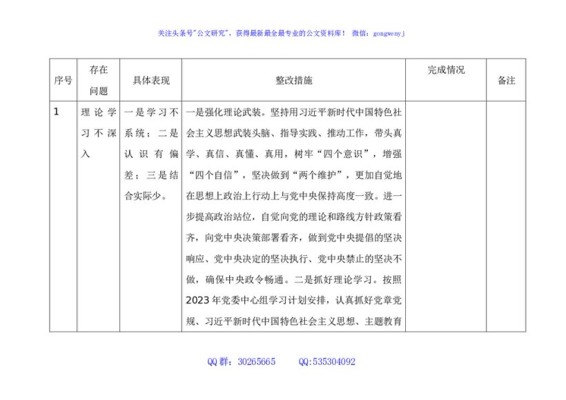 / 第二批主题教育清单及整改措施情况台账表格(查摆、六个方面存在问题及整改措施)