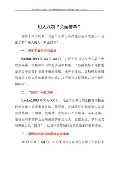 选人用人八项“负面清单”