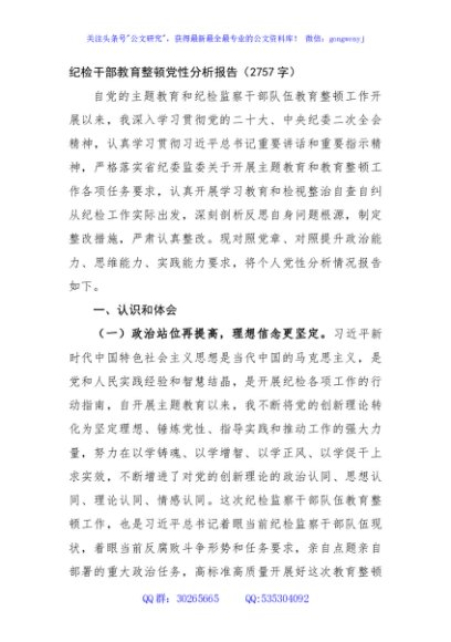 / 纪检干部教育整顿党性分析报告