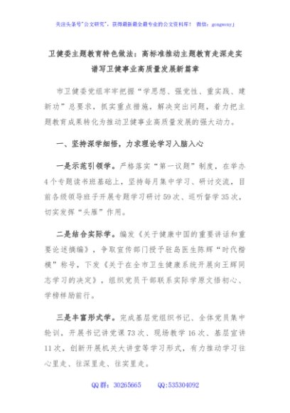 卫健委主题教育特色做法:高标准推动主题教育走深走实 谱写卫健事业高质量发展新篇章