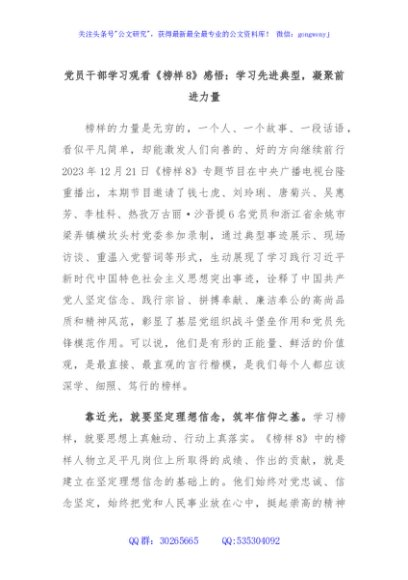 / 党员干部学习观看《榜样8》感悟:学习先进典型,凝聚前进力量