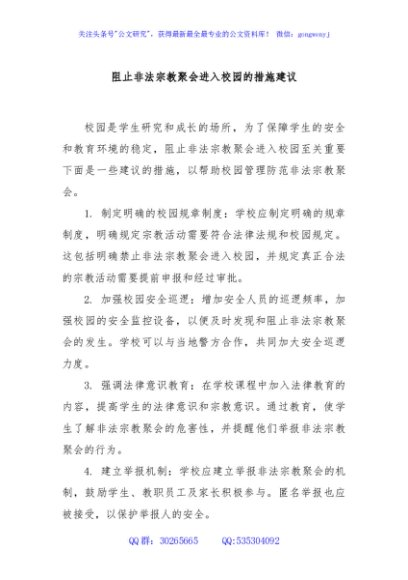 / 阻止非法宗教聚会进入校园的措施建议