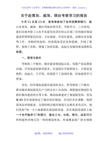 关于赴青岛、威海、烟台考察学习的报告