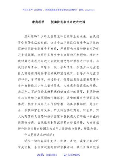 崇尚科学——抵御防范非法宗教进校园
