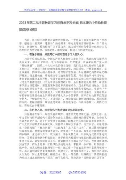/ 2023年第二批主题教育学习感悟在躬身自省 标本兼治中推动检视整改见行见效