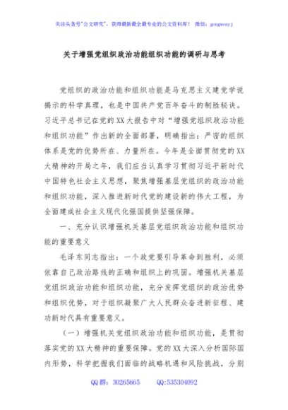 / 关于增强党组织政治功能组织功能的调研与思考