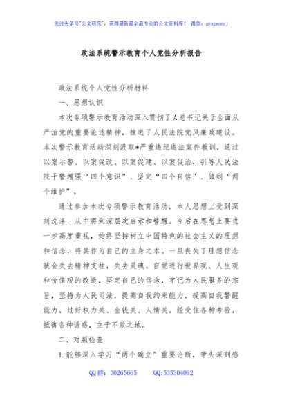 / 政法系统警示教育个人党性分析报告