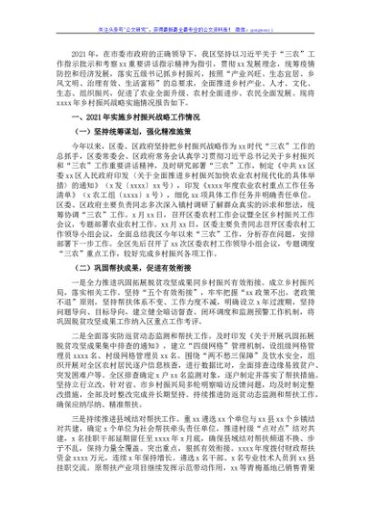 / 关于乡村振兴战略实施情况的报告(区县)