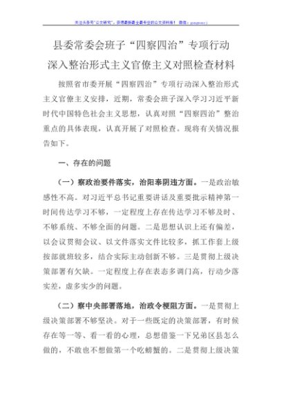 / 班子四察四治专项行动深入整治形式主义官僚主义对照检查材料