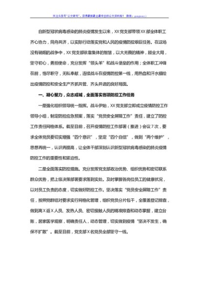 XX党支部抗击疫情先进集体事迹材料