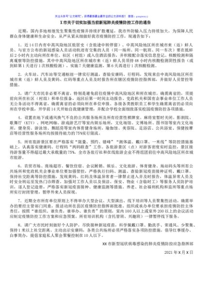 / X市关于切实加强当前新冠肺炎疫情防控工作的通告