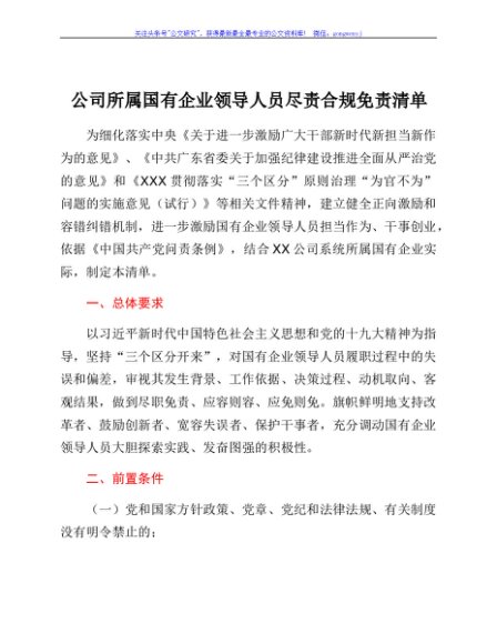 / 公司所属国有企业领导人员尽责合规免责清单