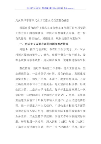 / 党员领导干部形式主义官僚主义自查整改报告