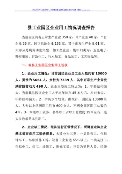 / 县工业园区企业用工情况调查报告