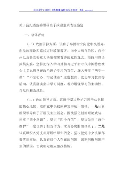 / 关于县纪委监委领导班子政治素质表现鉴定