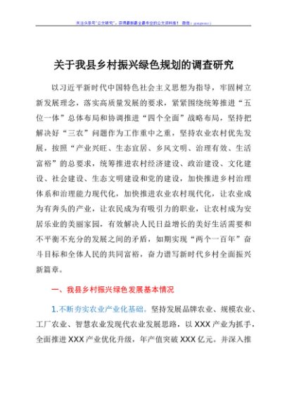 / 关于我县乡村振兴绿色规划的调查研究
