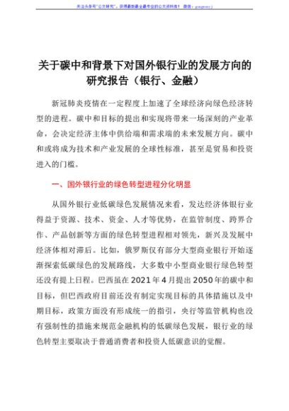 关于碳中和背景下对国外银行业的发展方向的研究报告(银行、金融)