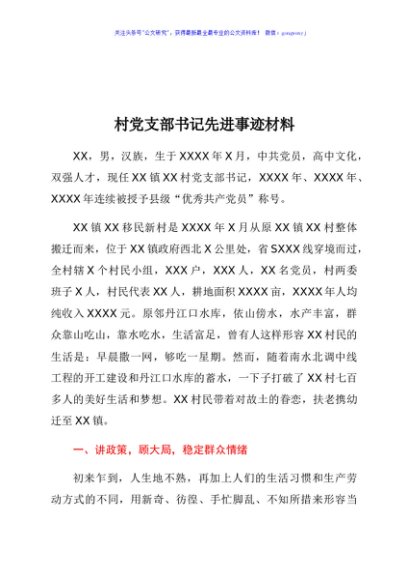 / 村党支部书记先进事迹材料
