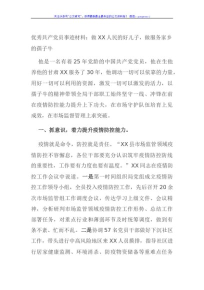 / 优秀共产党员事迹材料:做XX人民的好儿子,做服务家乡的孺子牛
