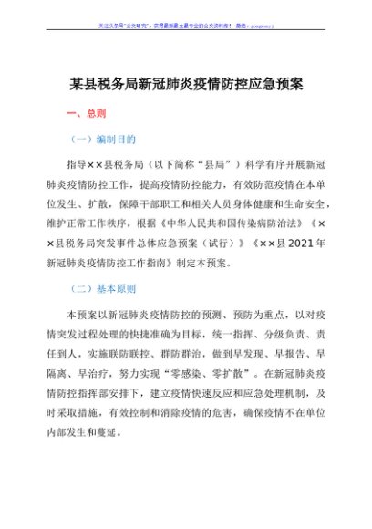 / 县税务局新冠肺炎疫情防控应急预案
