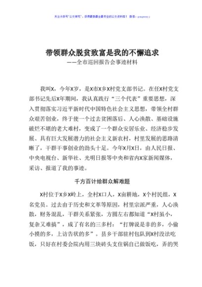 / 带领群众脱贫致富是我的不懈追求全市巡回报告会事迹材料