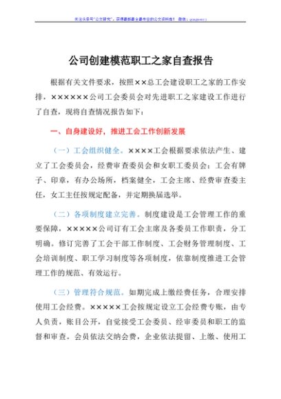 公司创建模范职工之家自查报告
