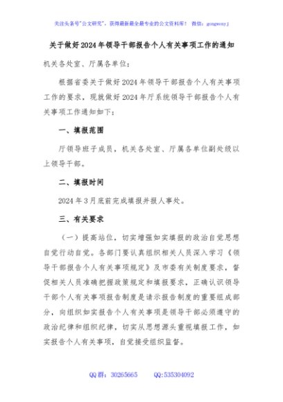 / 关于做好2024年领导干部报告个人有关事项工作的通知