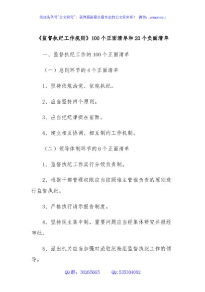 / 《监督执纪工作规则》100个正面清单和20个负面清单
