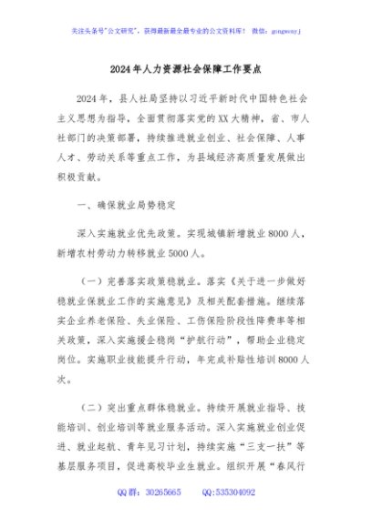 / 2024年人力资源社会保障工作要点