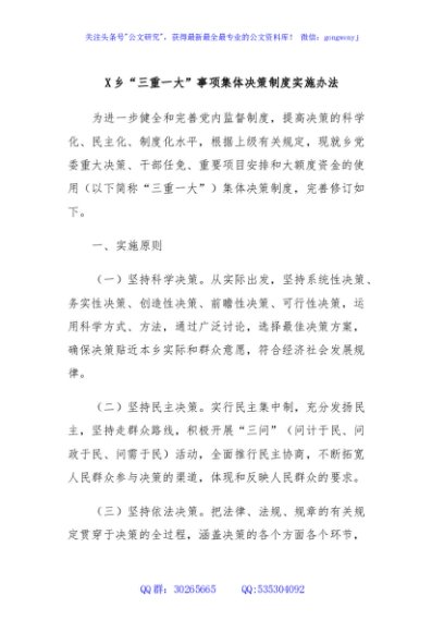 / X乡“三重一大”事项集体决策制度实施办法