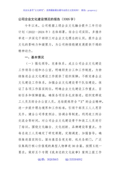 / 国企企业文化建设情况的报告