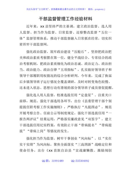/ 干部监督管理工作经验材料