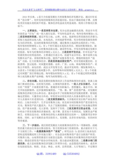 / 全县发展壮大村级集体经济情况的报告