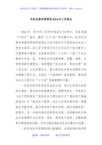 / 市机关事务管理局2024年工作要点