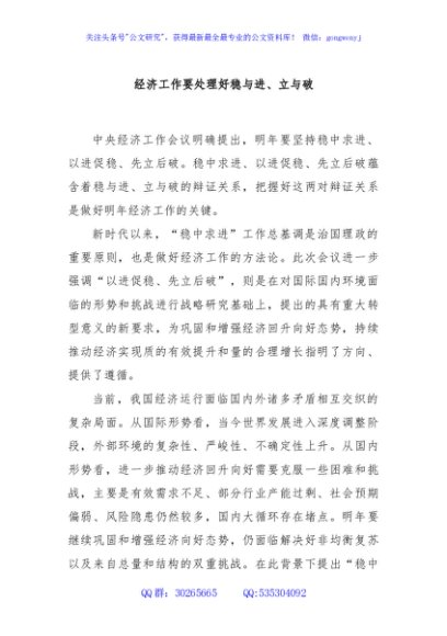 / 经济工作要处理好稳与进、立与破