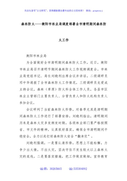 森林防火——衡阳市林业局调度部署全市清明期间森林防火工作