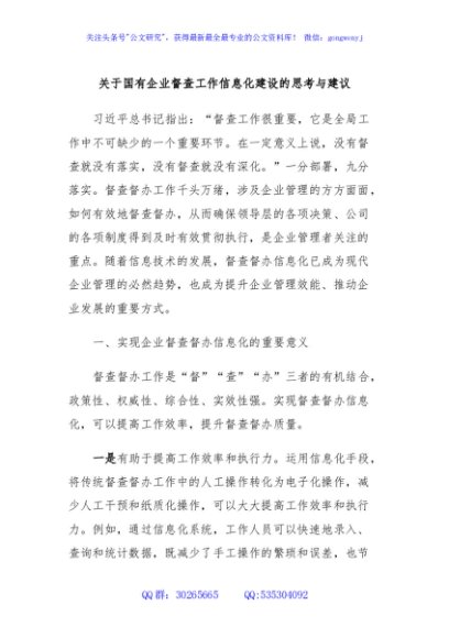 / 关于国有企业督查工作信息化建设的思考与建议