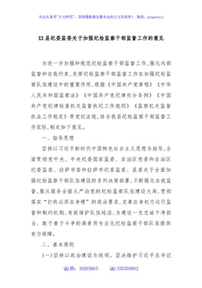 / XX县纪委监委关于加强纪检监察干部监督工作的意见