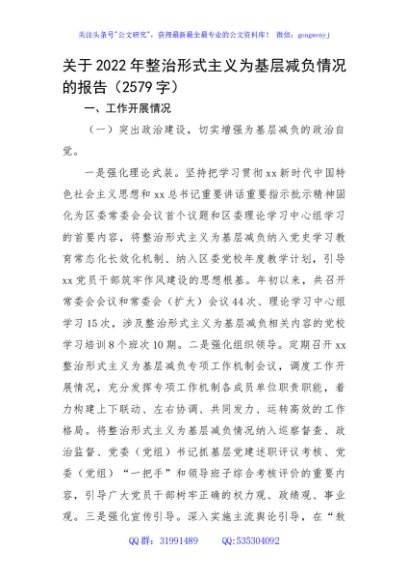 / 关于2022年整治形式主义为基层减负情况的报告