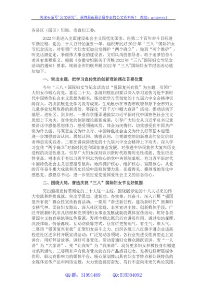 市开展2022年“三八”国际妇女节纪念活动通知
