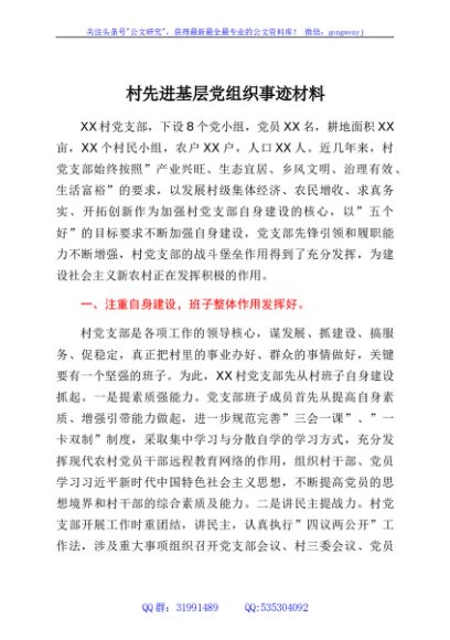 / 村先进基层党组织事迹材料